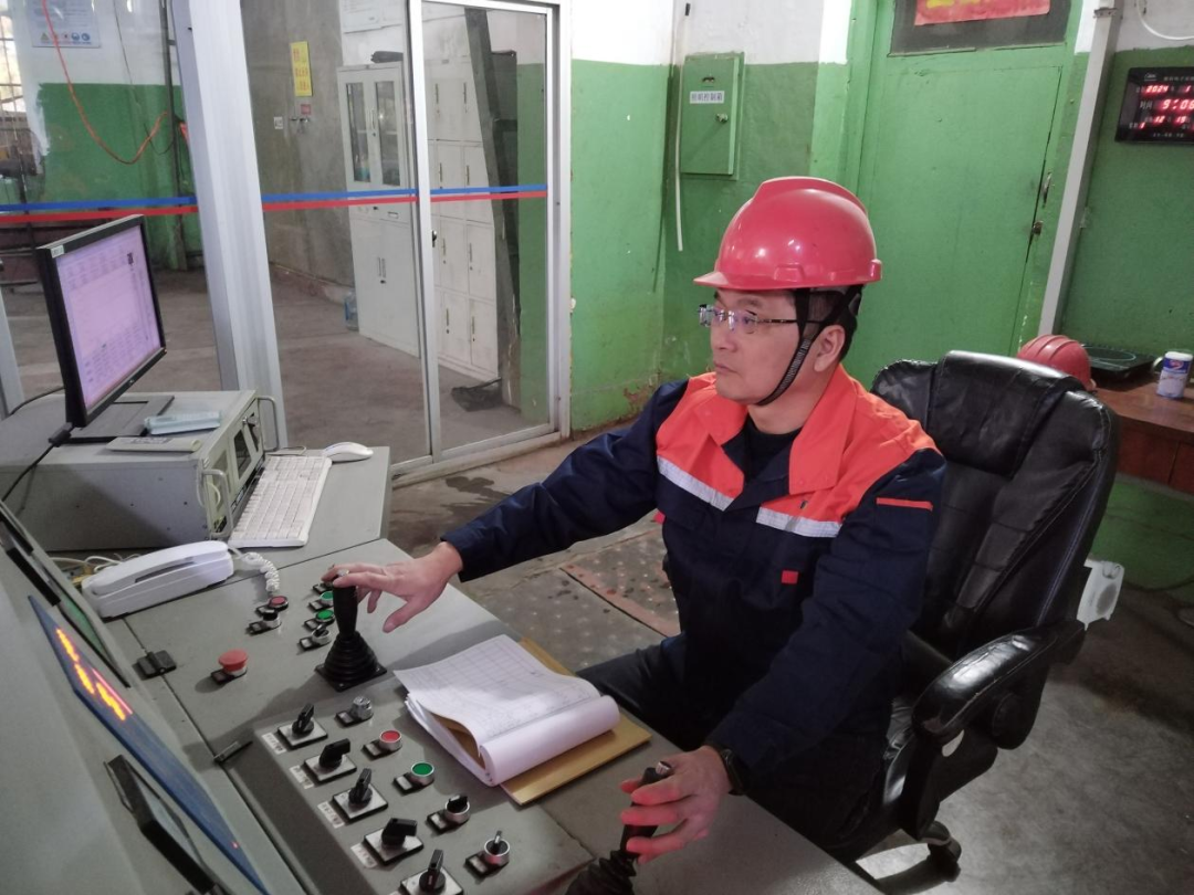 潘洛铁矿洛阳铁矿提升机操作工正在进行竖井提升作业。