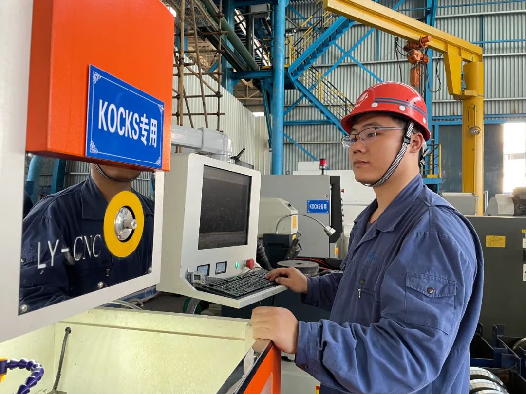 三钢棒材厂圆棒车间维运工段副工段长兼KOCKS总装班班长邓宁正在进行数控线切割操作。