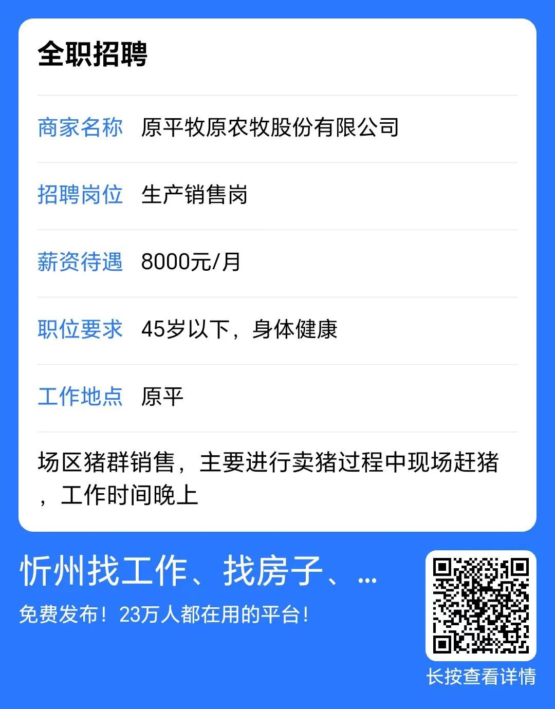 提示:收取费用或押金都可能有欺诈嫌疑,请警惕!(本平台仅提供信息交流,不承担因使用平台提供的信息所引致的损害赔偿!)