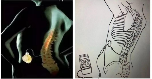 随之而来的是大量用药引起的副作用。相当一部分患者的情况是,疼痛程度可控制但不能耐受药物的副作用,副作用能耐受但疼痛控制不好,处于两难的境界。顽固性、长期的、延绵不绝的剧烈癌痛,不仅严重降低患者生活质量,还会降低人体的免疫力。那么除了口服及静脉给药治疗方法,还有更好的方法吗?有,那就是鞘内镇痛泵植入术。所谓“鞘内镇痛泵”,就是将一个持续泵药的装置,通过手术的方式埋置于患者体内。泵药的导管,其终端位置在椎管内,直通脑脊液。通过直接作用于中枢神经上负责疼痛信号传导的神经元,从而安全有效地达到镇痛的一种方法。