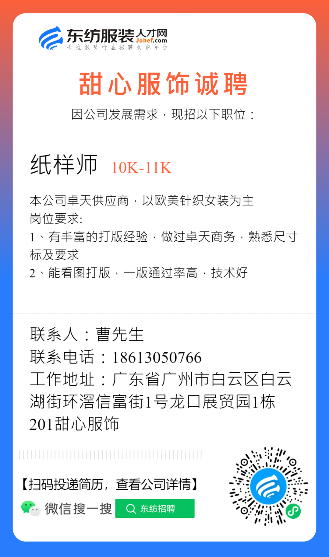 服装招聘·技术类丨2. 15号,打版师、车版师……