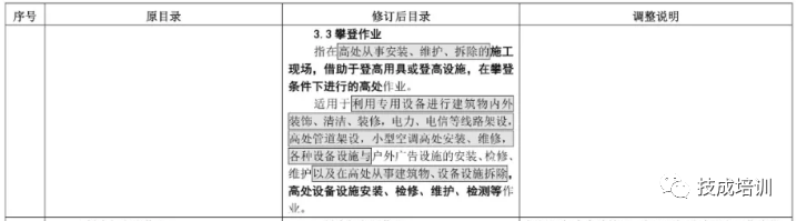 将原“高处安装、维护、拆除作业”拆分为“悬空作业”和“攀登作业”2 个操作项目。