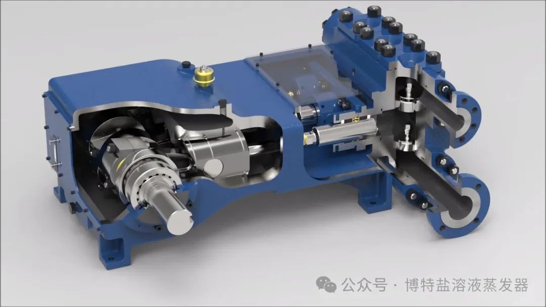 动力端由曲轴、连杆、十字头、轴承和机架等组成。液力端由液缸、活塞(或柱塞)、吸入阀和排出阀、填料函和缸盖等组成。