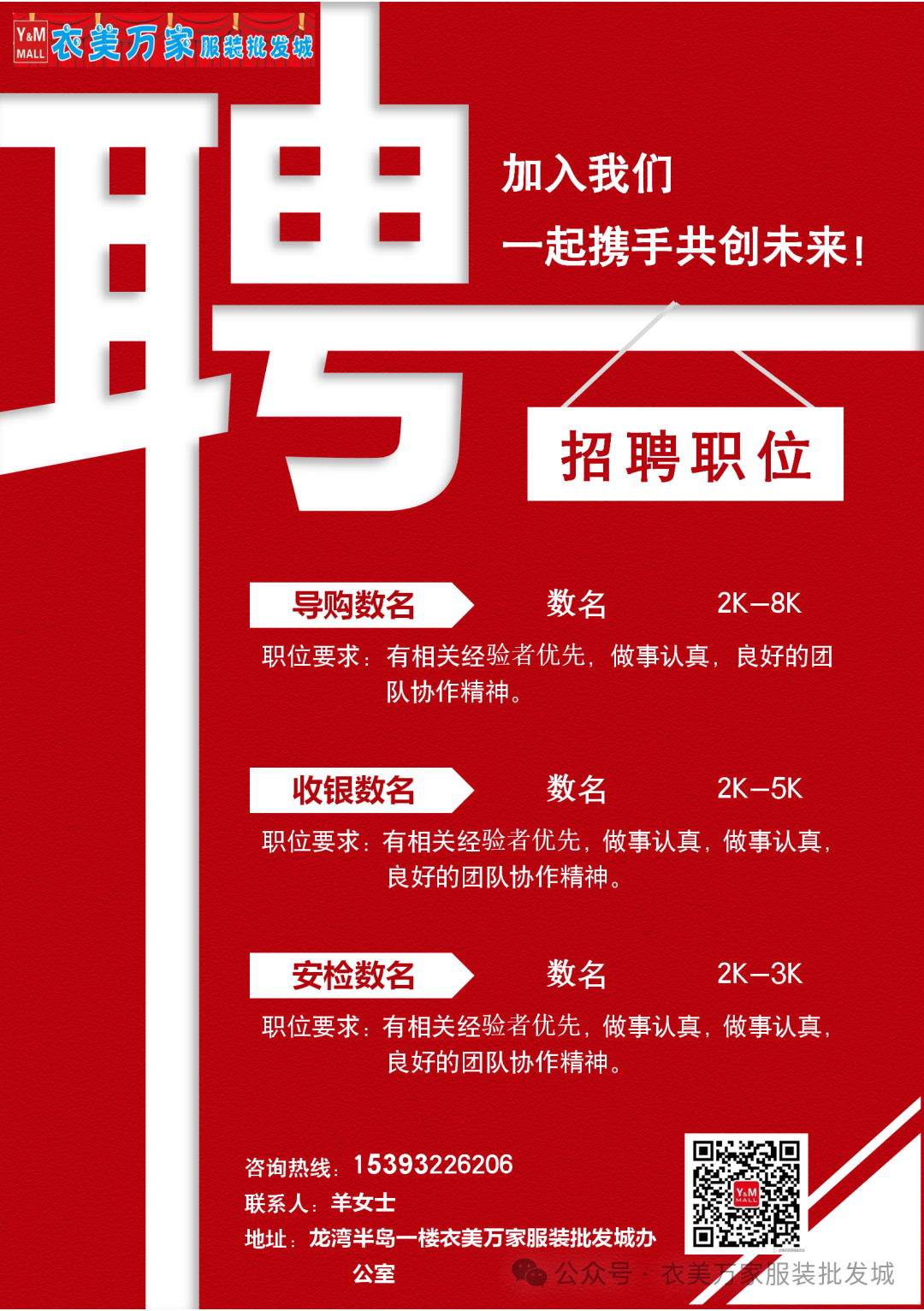 衣美万家服装批发城大动作开始啦!!!只要你胆大、够心细、就没有办不到的事.加入我们一起创造奇迹
