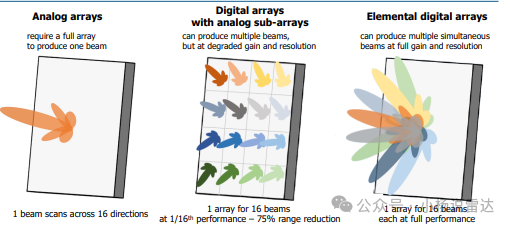 如此大的数据流需求带来了数字信号处理瓶颈,这极大地限制了当今数字阵列架构中可实现的独立单元雷达和 IBW 的数量,这些数字瓶颈随着阵列中单元雷达的数量和每个单元雷达带宽IBW 的增加而扩展。