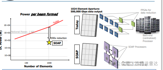 SOAP 会将这些处理单元移动到阵列上,尽可能靠近射频 (RF) 前端,以便数字信号数据一生成就可以开始处理,然后再将其传输到阵列上或从阵列上传输出去。”还