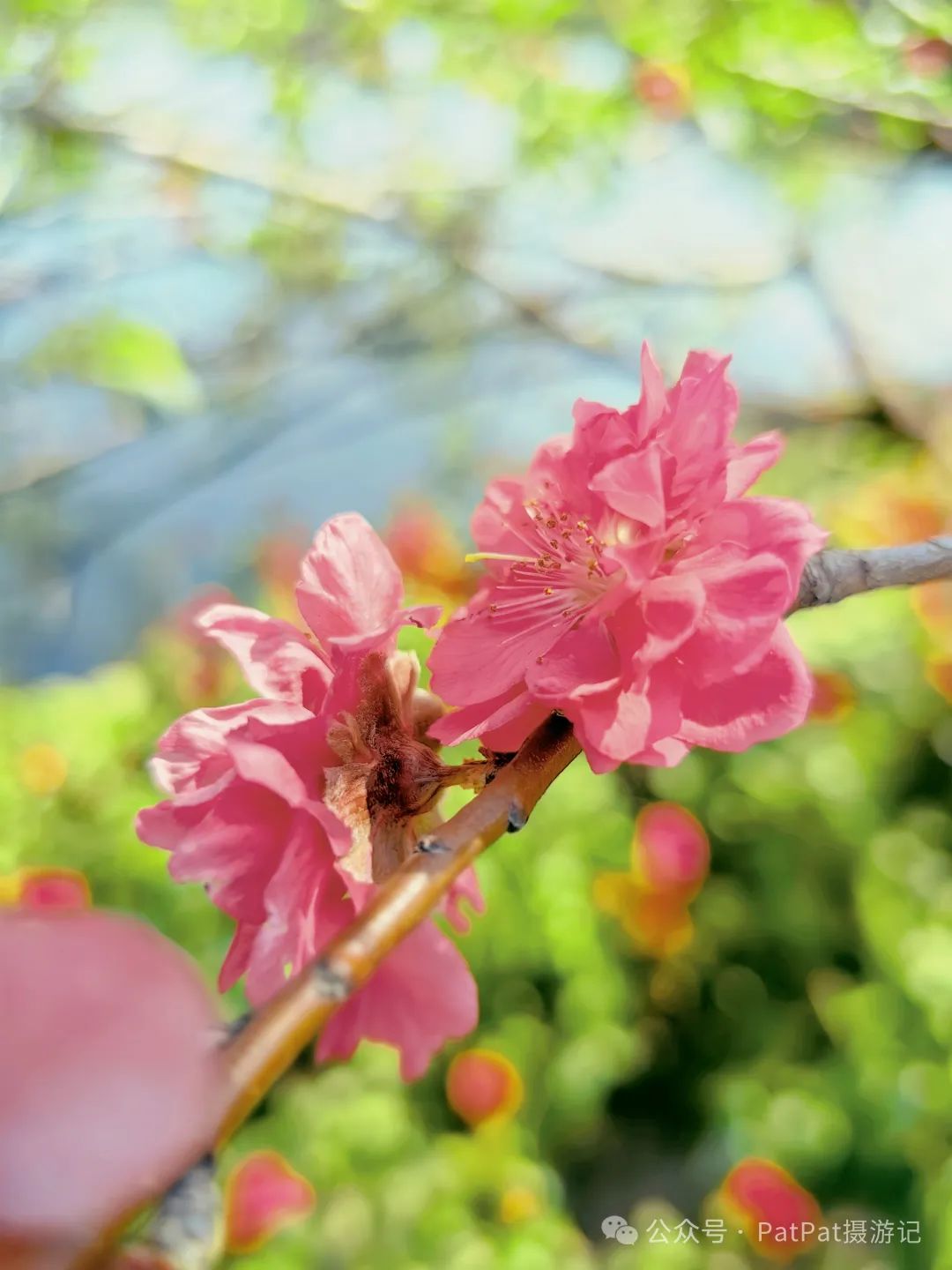 流花湖公园里,各色春花也在争妍斗艳。桃花开了,炮仗花也开了,一片喜气洋洋的景像。