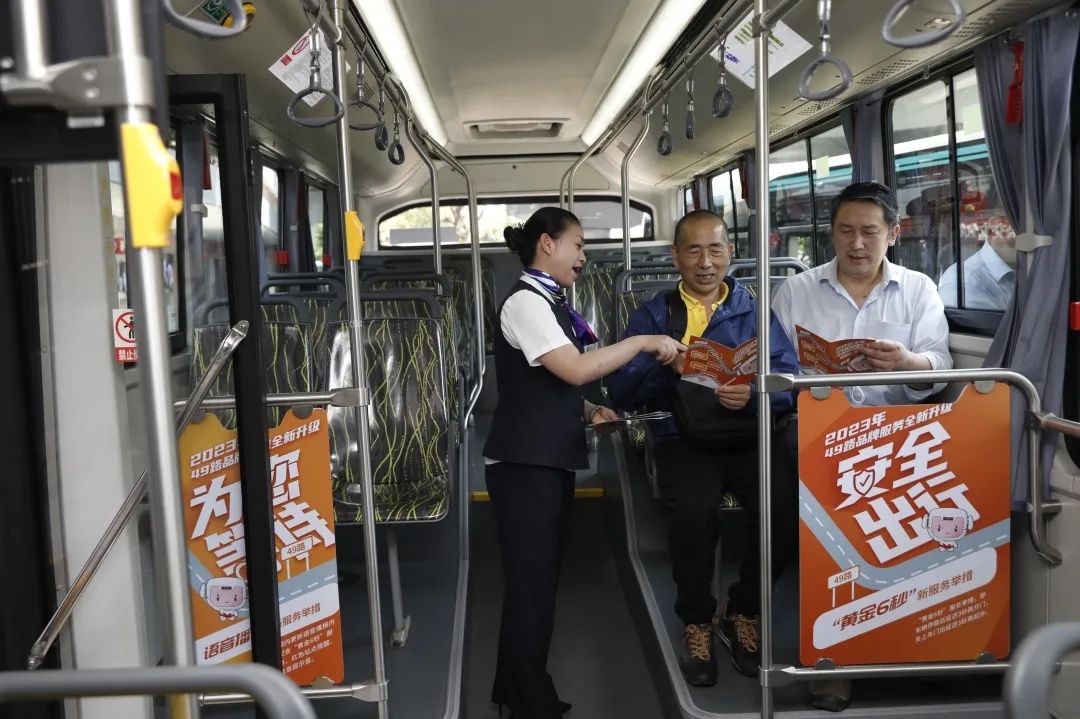 49路沿途经过15家大小医院,客流主体为老年乘客、特殊乘客。为了不断升级49路服务举措,提升市民的乘车体验,49路全新推出“为您等待”服务举措,将车厢“语音播报升级”与“黄金6秒”相结合,这项服务举措是49路全体驾驶员向社会作出安全服务承诺,缓解乘客下车焦虑,进一步降低客伤事故的发生率。