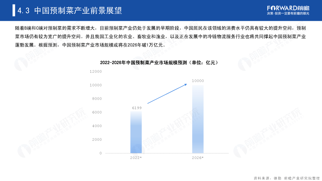 不过预制菜行业前景似乎一片大好。根据艾媒咨询的数据,2022年中国预制菜市场规模达4196亿元,同比增长21.3%。该机构预计到2026年预制菜市场规模将达到1.07万亿元。
