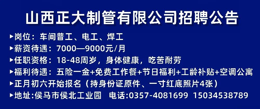 2临汾一制造企业招聘:薪资高、缴纳五险一金,报名从速!