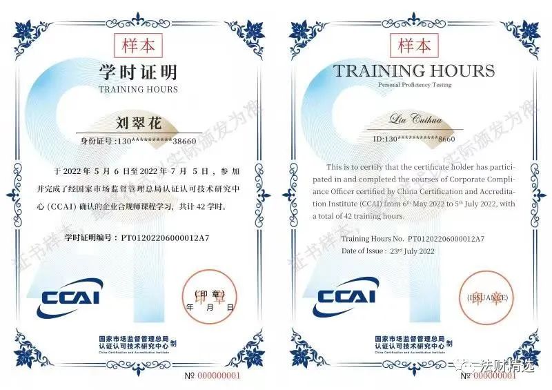 《学时证明》以电子版形式发放,凭《学时证明》可申请参加企业合规师人员能力验证活动(验证形式为线上考试)。