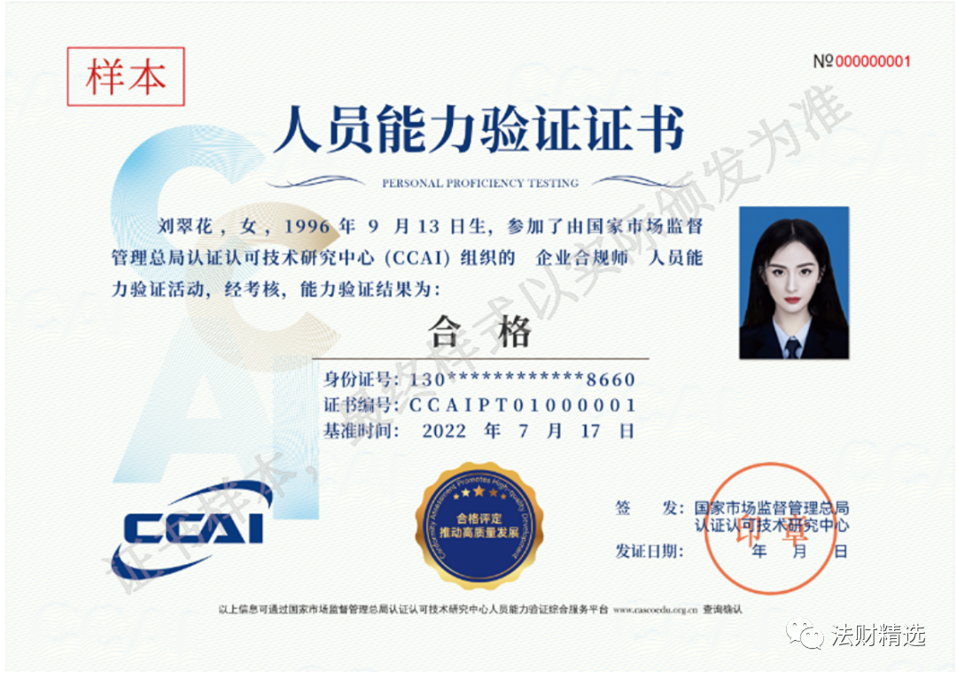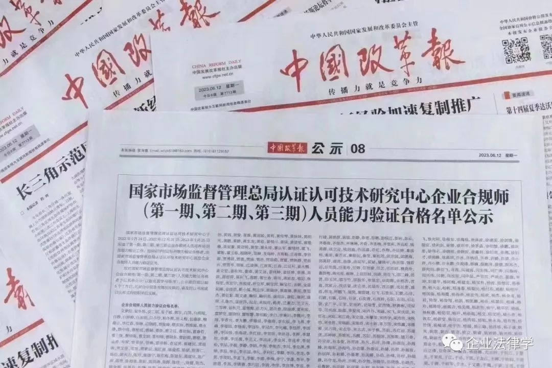 国家市场监督管理总局认证认可技术研究中心发布《市场监管总局认研中心关于开展人员能力验证工作(第一批)的通知》,面向社会正式开展人员能力验证工作,其中包含了企业合规师人员能力验证。
