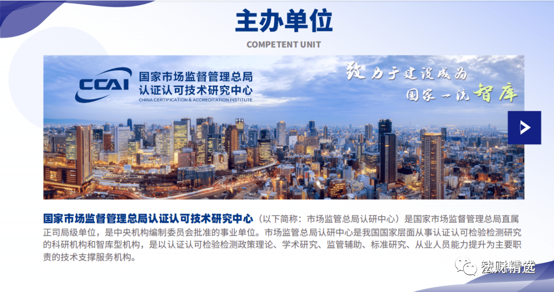 国家市场监督管理总局认证认可技术研究中心是国家市场监督管理总局直属正司级事业单位,具备着从业人员能力提升、监管辅助和认证认可的相关职责。