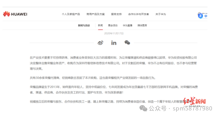 在华为受美国打压最困难的时候,2022年11月17日华为对外公告出售荣耀业务,不再持有荣耀任何股份,不再有任何关系。此次分手非常果断和彻底。