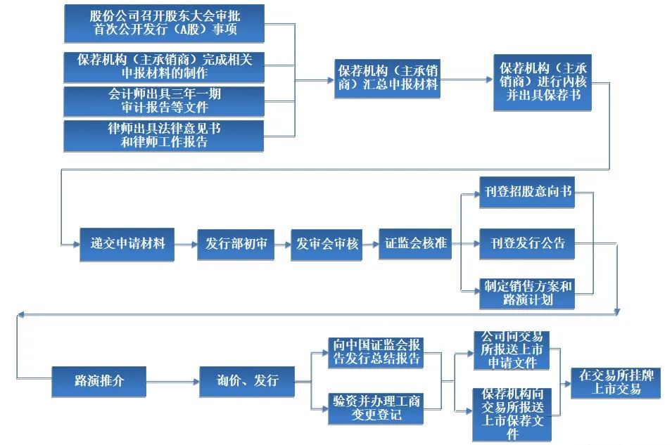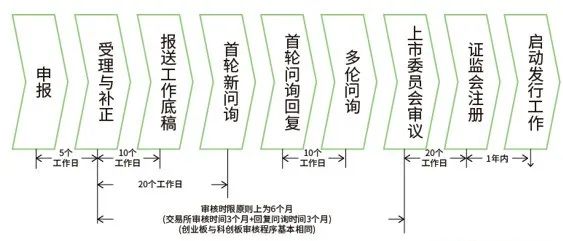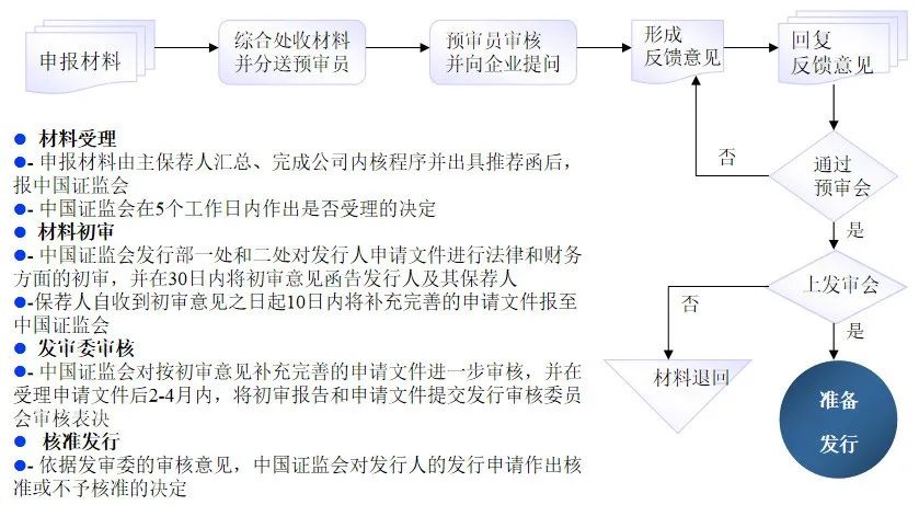 这一阶段是从申报发行阶段至完成上市整个阶段所需的工作流程,包含主要四个方面:证监会审核流程、路演推介阶段工作流程、询价阶段工作流程、上市阶段工作流程。