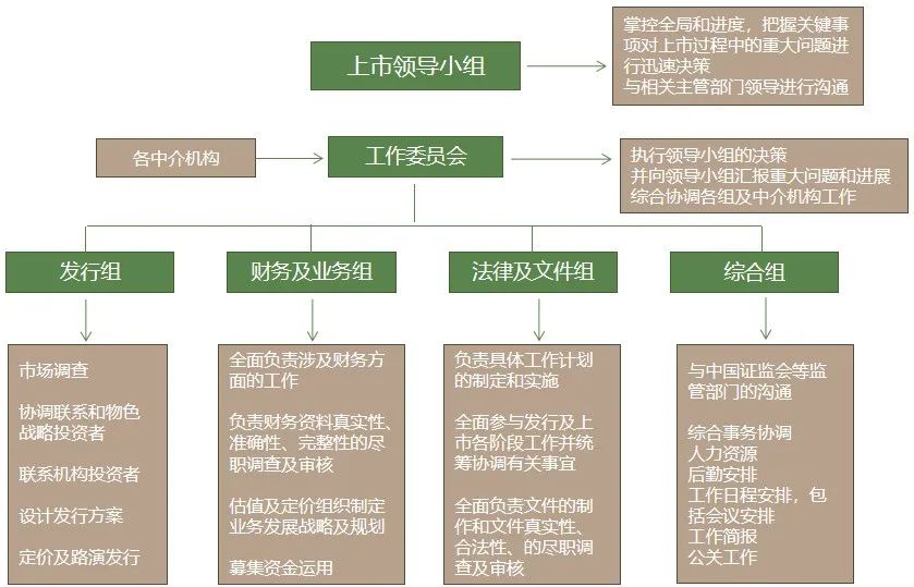 通常来说,上市准备阶段包含团队组建、全面尽职调查、申请文件制作三个方面,这三个方面是整个IP0项目实施的基础。