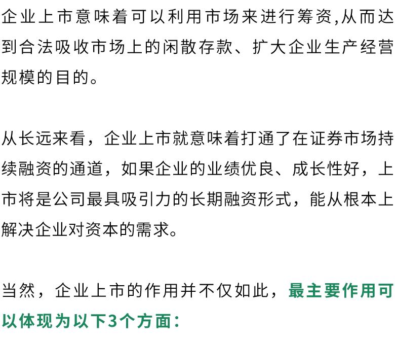 IPO上市对于企业来说是绝对的正价值。企业通过上市融资不仅可以使企业获取稳定的长期资金来源、扩充资本实力;