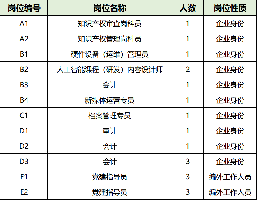 具体招聘岗位详见《2024年江苏无锡经济开发区人才服务公司企业身份和编外工作人员公开招录岗位表》。(附件1)