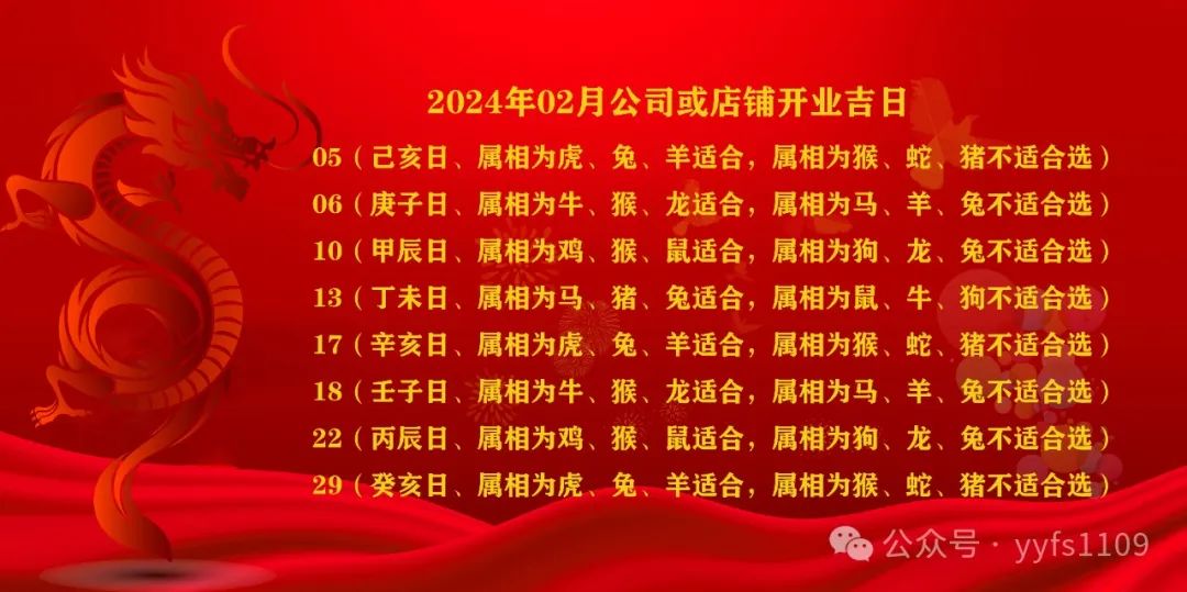 在此之前我们相继发布了适合作为破土动工、乔迁新居以及结婚的吉日表,有咱们的微友相继问道:老师你好,想知道02月份适合店面或者公司开业的黄道吉日都是哪些日子,现在我们总结了02月份开业吉日一览表,在本月份有公司开业的同志们,可以参考一下哟!