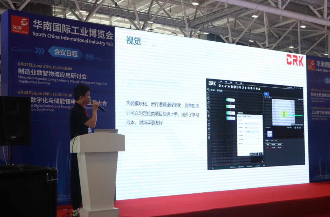 长荣科在展示机器人技术的同时,还受邀在12号馆现场馆进行了专业的技术演讲。长荣科视觉研发经理在现场进行了技术分享。讲述了机械视觉技术的各种应用场景以及该技术如何在智能制造中发挥更大的作用。他强调长荣科作为专业的智能制造企业,在视觉领域上不断探索和创新的实践和成果,引领工业自动化升级浪潮。