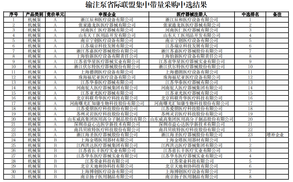 输注泵中选结果如下: