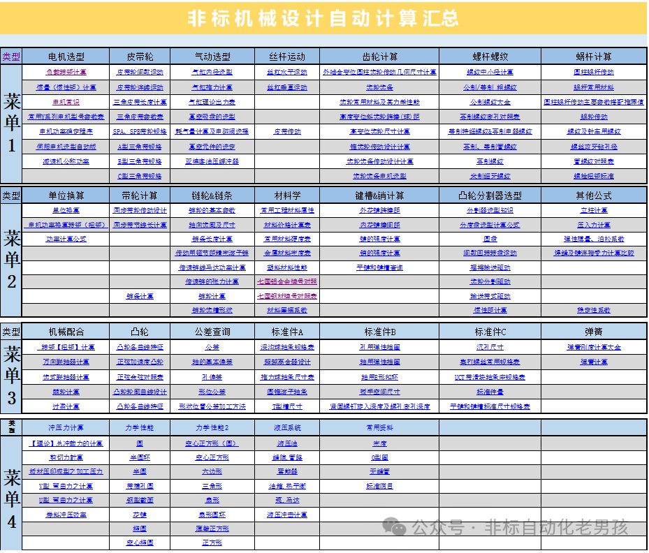 在机械设计的世界里,无论是初学者还是资深专业人士,都需要一套全面且实用的计算工具来辅助设计。今天,就为大家带来一份非标机械设计自动计算汇总,让你在设计的道路上更加得心应手!