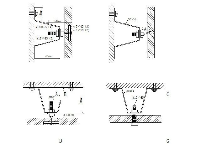 D、G—悬挂式锚固件D、G型,用于檐口下悬吊处。