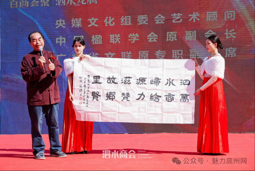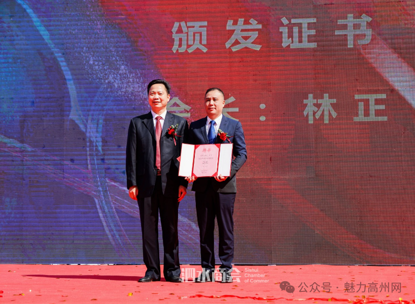 在外发展的近百位泗水籍企业家们齐聚一堂,共叙乡情、共谋发展、共话未来,祝贺高州市泗水镇商会成立。当选为会长的茂名市国际投资集团董事长林正表示,将汇聚泗水人的勤劳与智慧,充分激发会员活力,不断壮大乡贤队伍,把商会建设成为与时俱进、锐意进取的一流商会。高州市泗水镇商会会长林正:“我们商会将坚持党建引领,加强管理运营,充分依托商会资源优势、人才优势,积极发动会员企业踊跃投身家乡建设,希望各位乡贤们发挥‘乡贤+’力量,助力泗水的‘百千万工程’,全力支持家乡高质量发展。”会上,高州市泗水镇党政负责同志与乡贤们畅所欲言,就高州市泗水未来发展深入交流探讨。高州市泗水镇党委书记钟宁:“今天,泗水镇商会成立了,我们镇党委、政府是商会发展的坚强后盾,同时也希望泗水商会发挥好作用,助推泗水经济高质量发展走在前列。”高州市泗水镇商会现有会员企业上百家,涉及涵盖:生态农业、地产建筑、文体旅游、金融科技、娱乐餐饮、能源物流等多个行业领域,形成上下全产业链的资源合作,会员企业总产值超百亿规模。