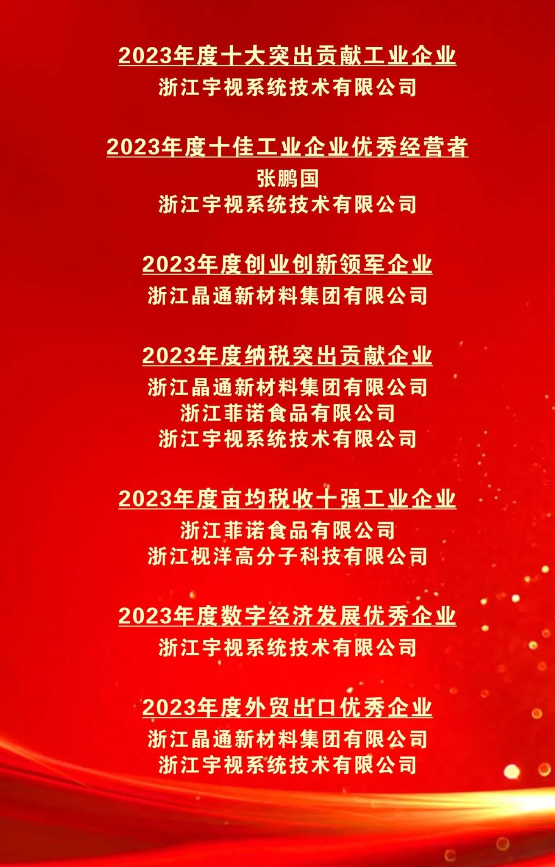 会上对2023年度先进集体和个人进行了表彰,桐乡市杭州商会企业浙江宇视系统技术有限公司、浙江晶通新材料股份有限公司、浙江枧洋高分子科技有限公司、浙江菲诺食品有限公司榜上有名!