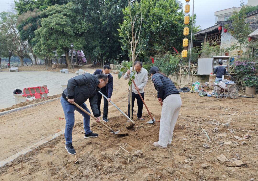 1月26日,罗城街道乡贤助力绿美乡村植树活动。