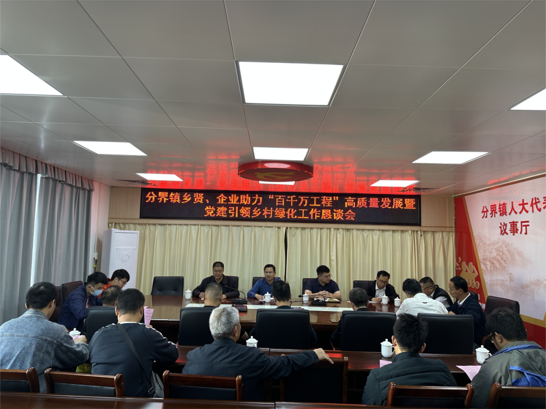 1月23日,分界商会助力“百千万工程”高质量发展暨党建引领乡村绿化工作恳谈会上,商会企业家们共捐资3.6万,用于购买绿化树苗。