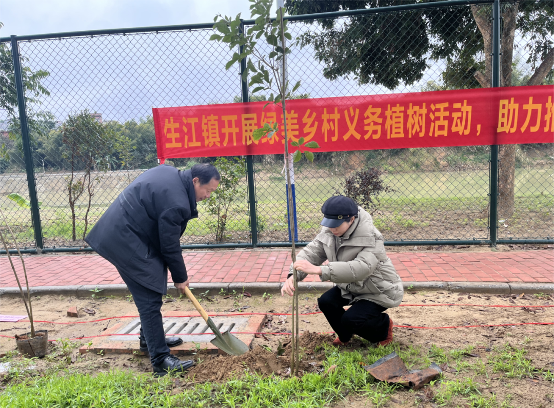 1月27日,生江镇商会参与绿美乡村义务植树活动。