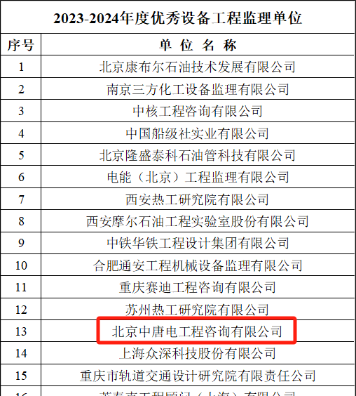 “优秀设备工程监理单位”评比活动由中国设备监理协会发起,每两年评选一次,是国家设备监理行业的权威奖项。旨在嘉奖在规范执业、服务质量、内部管理和创新发展等方面表现优异,为提升国家装备制造业质量和效益做出突出贡献的监理单位。