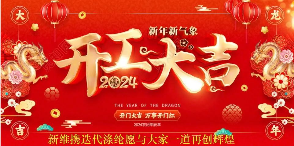 龙腾盛世,祥龙献瑞。甲辰龙年正月初九(阳历2024年2月18日星期日),青岛新维纺织开发有公司、青岛新维纺织研究院、青岛迭代新材料发展有限公司、青岛新申元贸易有限公司、青岛汉臣装备科技有限公司正式协同开工。