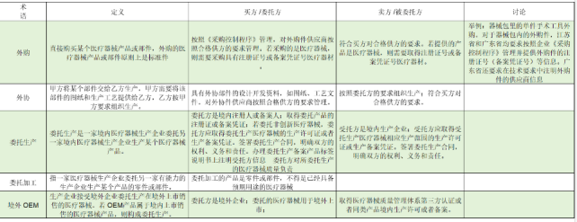 指已取得《医疗器械生产许可证》或进行了第一类医疗器械生产企业告知登记的医疗器械生产企业之间,由持有《医疗器械注册证》的一方(委托方),按委托合同的约定,委托另一方(受托方)生产其《医疗器械注册证》指定的产品(包括已具备临床基本预期功能,但尚未完成工艺规定的全部工序,如灭菌、包装、产品或包装上已标识有委托方信息),并对该产品负法律责任的一种生产方式。