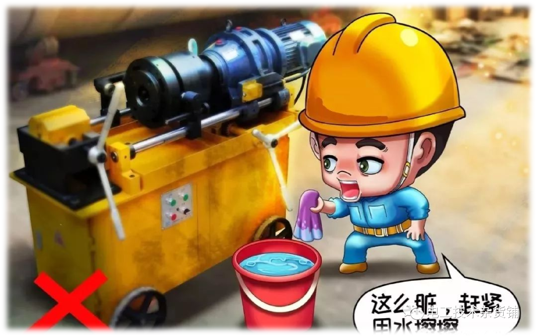 7、不用水冲洗揩擦电气设备。水具有导电性,用水冲洗揩擦电气设备时,易发生触电事故。