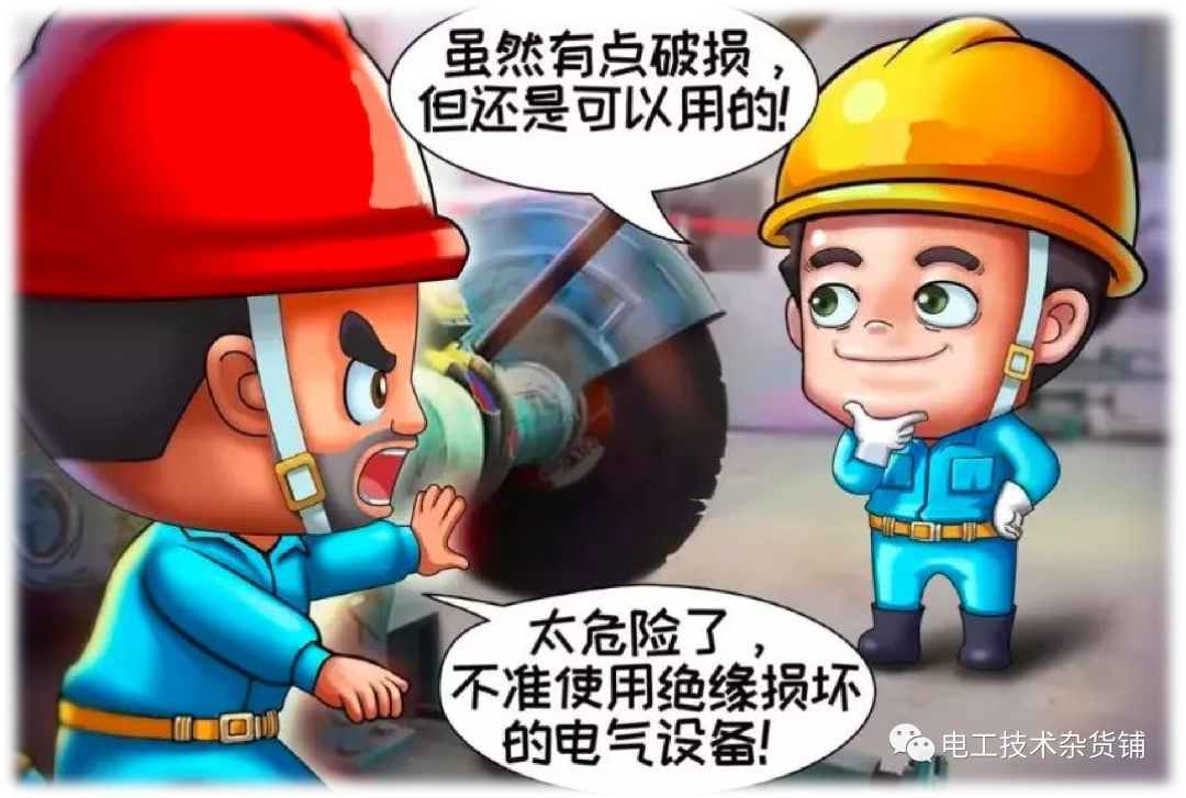 10、不使用绝缘损坏的电气设备。绝缘损坏的电气设备会发生漏电,产生触电事故,应及时进行调换。