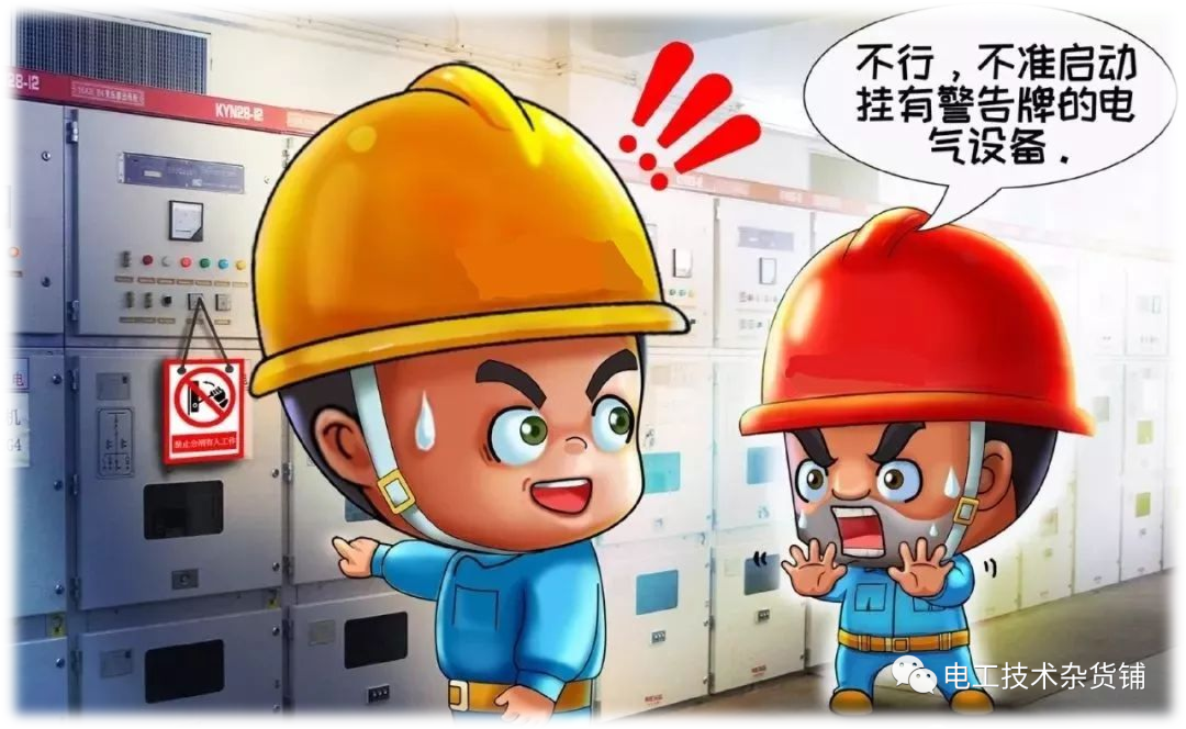 5、不启动挂有警告牌的电气设备。电气警告牌的作用是提醒电气工作人员避免发生误操作或误入带电区域,不准启动挂有警告牌的电气设备。