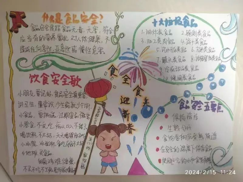 作为一名优秀的“五小好少年”在快乐度过寒假的同时,需要完成五条路小学2024年寒假学生食品安全任务:1.用视频记录:学生给家长讲述过年期间怎样健康饮食。2.学生制作食品安全手抄报。瞧,这些是五条路小学的孩子们的食品安全作业,为孩子们的用心点赞!