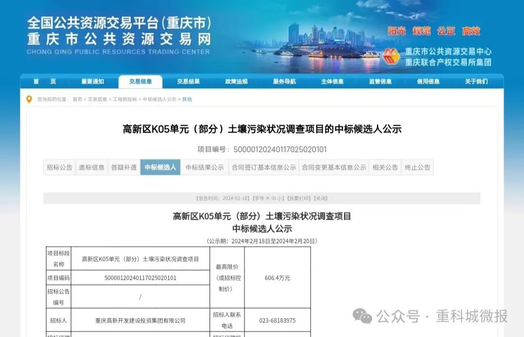 2月18日,《高新区K05单元(部分)土壤污染状况调查项目