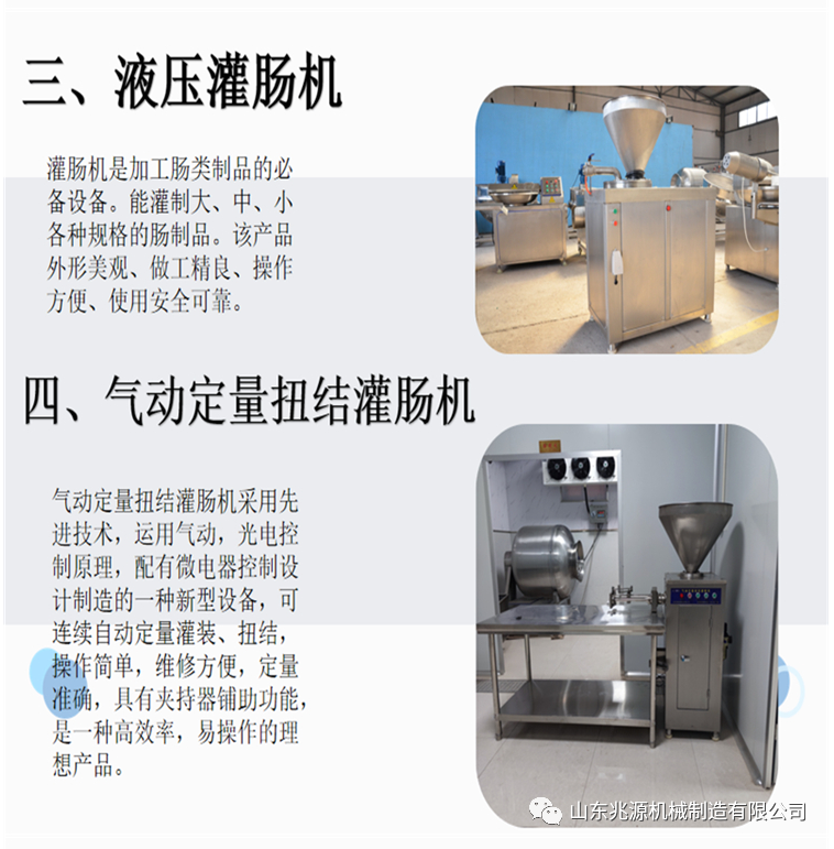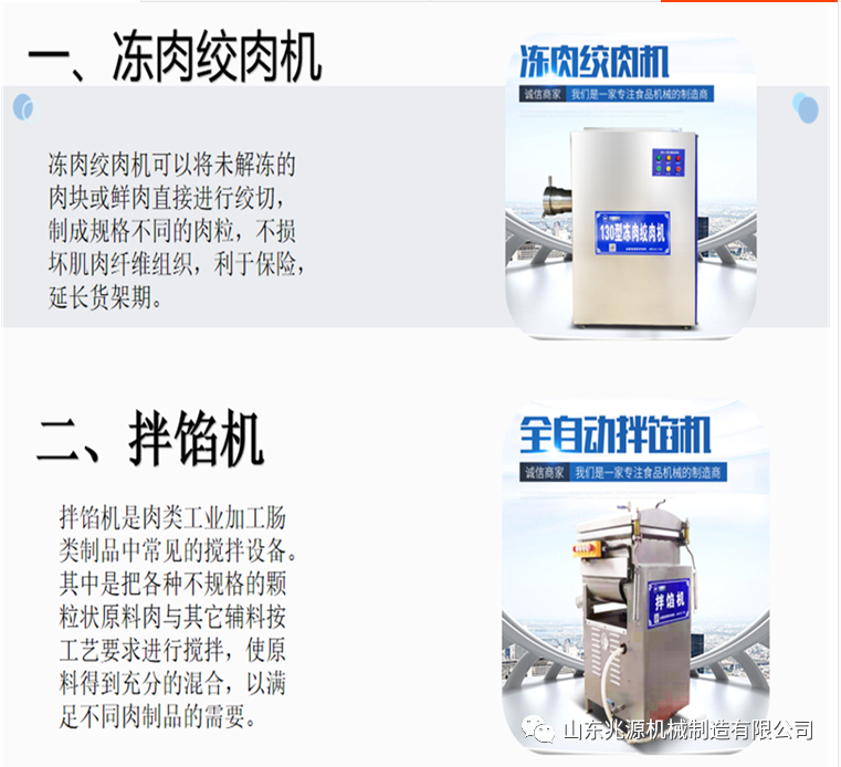肉制品的加工范围比较,像熟食类、香肠类、牛羊肉等产品,是每到逢年过节都是挺大的,特别是下半年,一些食品加工厂都争先恐后的上设备,灌肠生产线,我公司有加工肉制品的全套设备,可以给客户提供成套的肉制品加工方案。