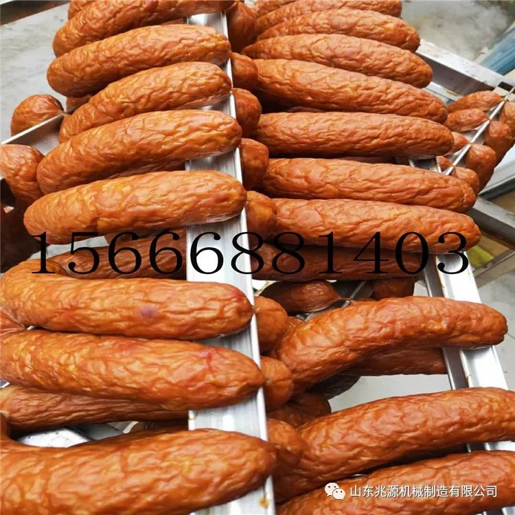 哈尔滨红肠烟熏炉红肠怎样做?表面有核桃状皱纹的散布,表面呈现枣红色,或者是红色在需要在加工的过程中达到效果,首先便面核桃状的皱纹需要进行烘干,在烘干的过程中需要控制好水分和温度才能掌握好加工的效果,在颜色上,烟熏的木料中需要添加红糖,达到外表枣红的效果。哈尔滨红肠烟熏炉红肠属于一种从国外流传过来的美食,外表是红色的,或者是枣红色的,表面有核桃状散布的皱纹,肠的口感上肉质比较Q弹,肉质有嚼劲,咸甜适口,还有蒜香味的,或者是麻辣味的,或者是原味的,或者是口感上偏甜,使用烟熏炉加工红肠能够完成红肠蒸煮烘干烟熏上色四个过程,属于全自动的烟熏设备。