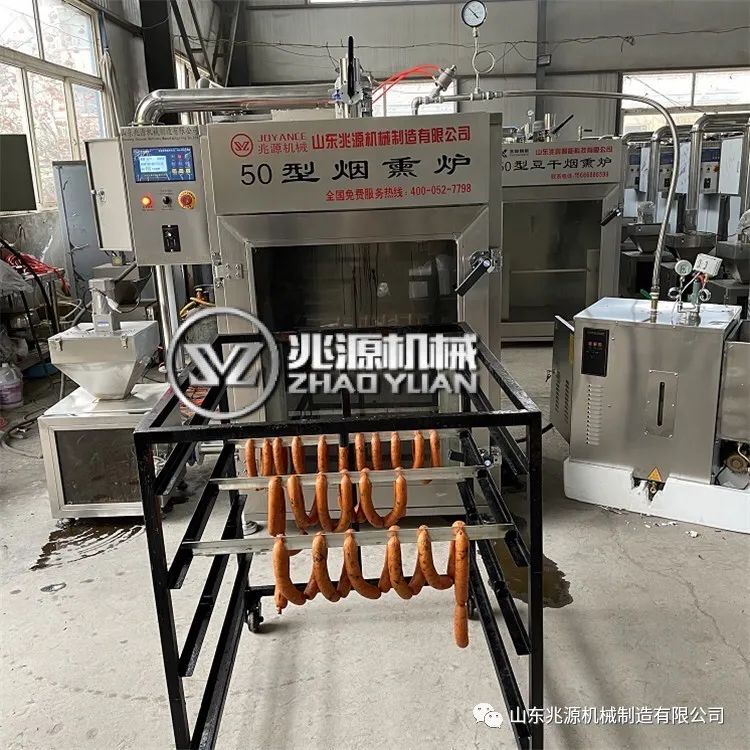 5.蒸煮、烟熏。这种蒸熏炉用着多种功能,蒸煮,烟熏,烘干一体化,非常方便。