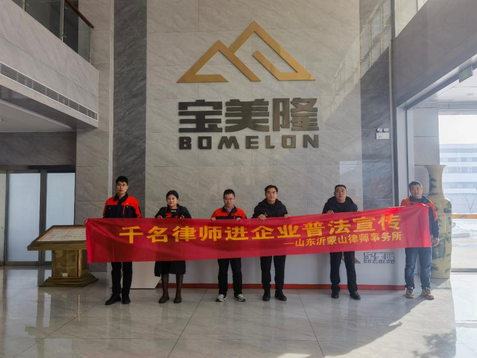 山东沂蒙山律师事务所法律服务队成员徐明学、王新杰走进宝美隆(山东)智能科技有限公司、山东恒泰纺织有限责任公司开展普法宣传活动。普法活动以座谈会和工作现场的形式进行,向企业管理人员宣讲企业经营活动常用政策法规和优化营商环境的若干政策措施,宣传与职工权益密切相关的劳动法律法规,并就企业管理人员和一线职工提出的法律问题进行详细解答,引导企业和职工树立法治意识,提高依法经营和依法维权水平。