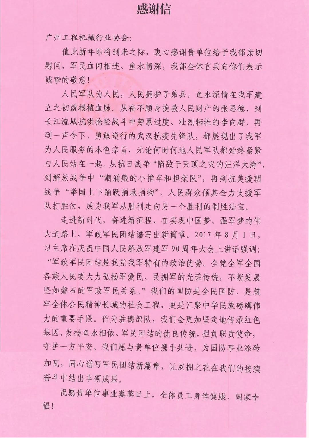 部队领导对慰问团的到来表示热烈欢迎,并对广州市社会组织管理局及各行业社会组织的关心和支持表示感谢。他表示,全体官兵将继续发扬优良传统,为国家安全和经济社会发展作出更大贡献。