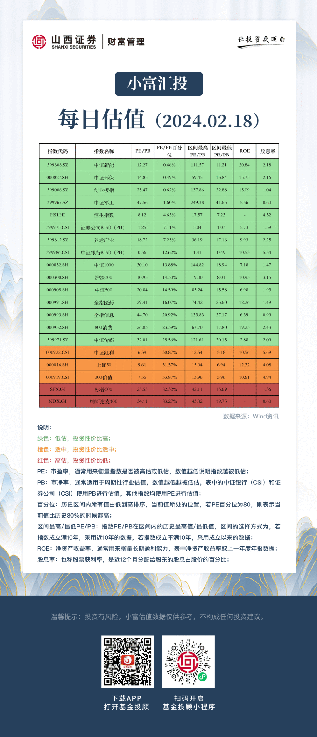 小富百宝箱 | 行业每日估值(2024.2.18)