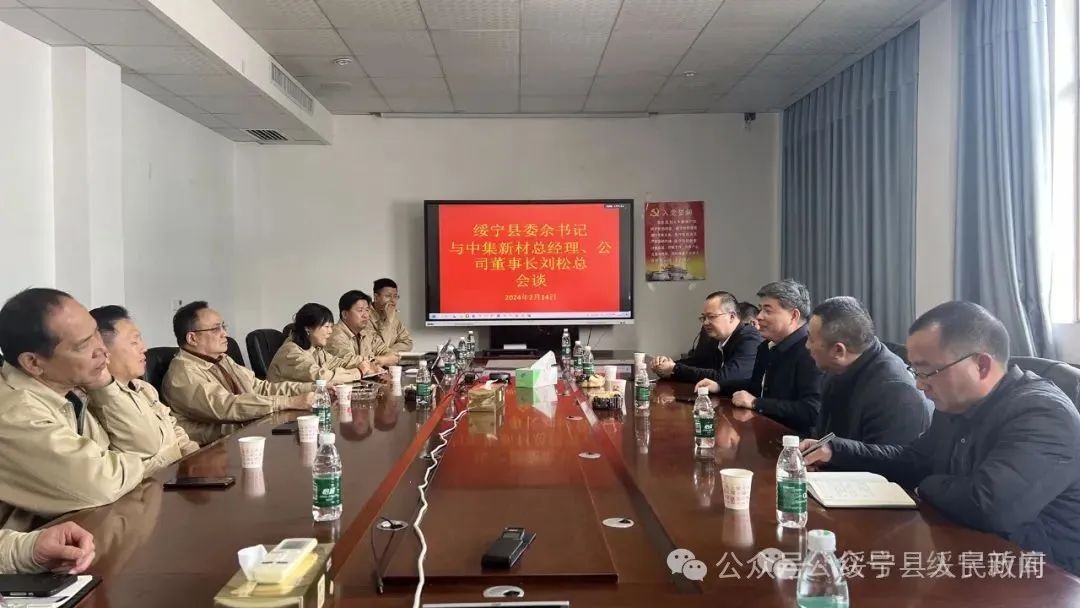 2月14日,县委书记佘芝云到湖南中集新材料科技有限公司,深入企业生产一线,了解企业新春开工情况,并与中集新型环保材料股份有限公司总经理、湖南中集新材料科技有限公司董事长刘松进行会谈。副县长黄先伟、绥宁产业开发区管委会主任匡继辉参加。