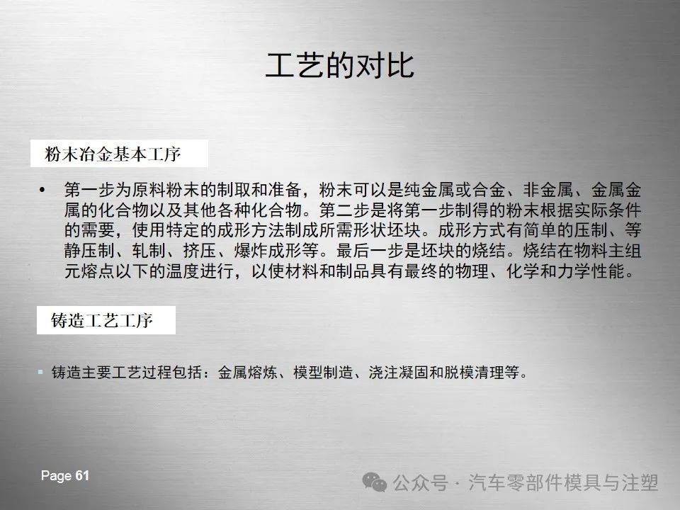粉末冶金工艺和铸造工艺的异同