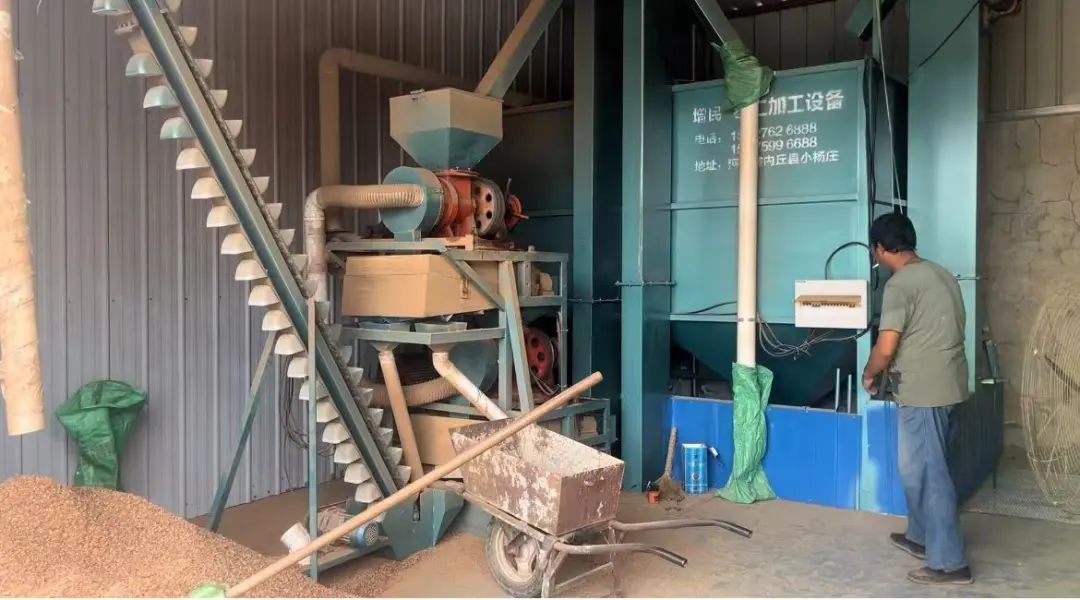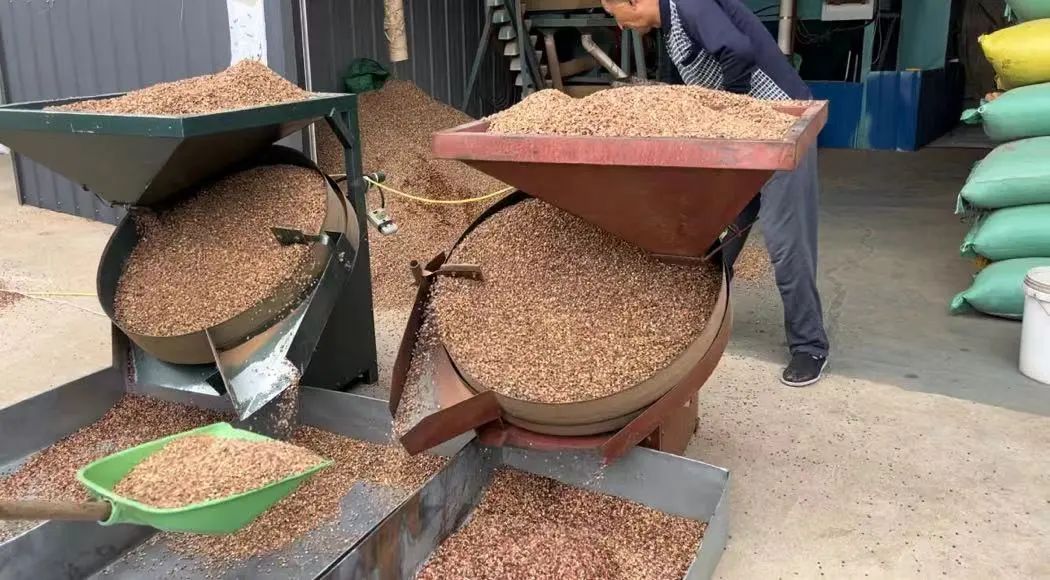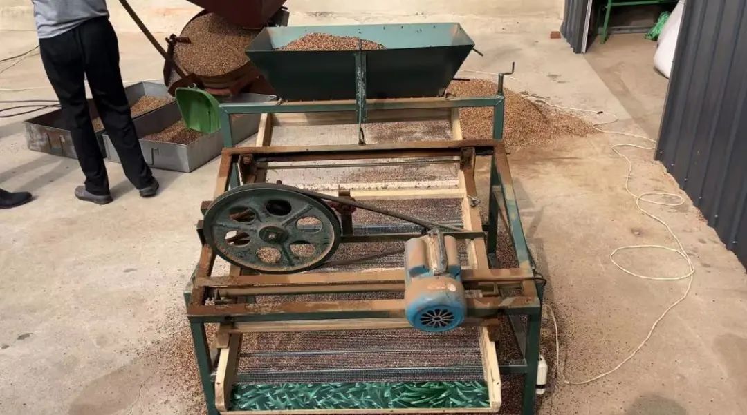 通过不同的筛底将硬壳及杂质清除,过完转筛后还会有部分杂质。