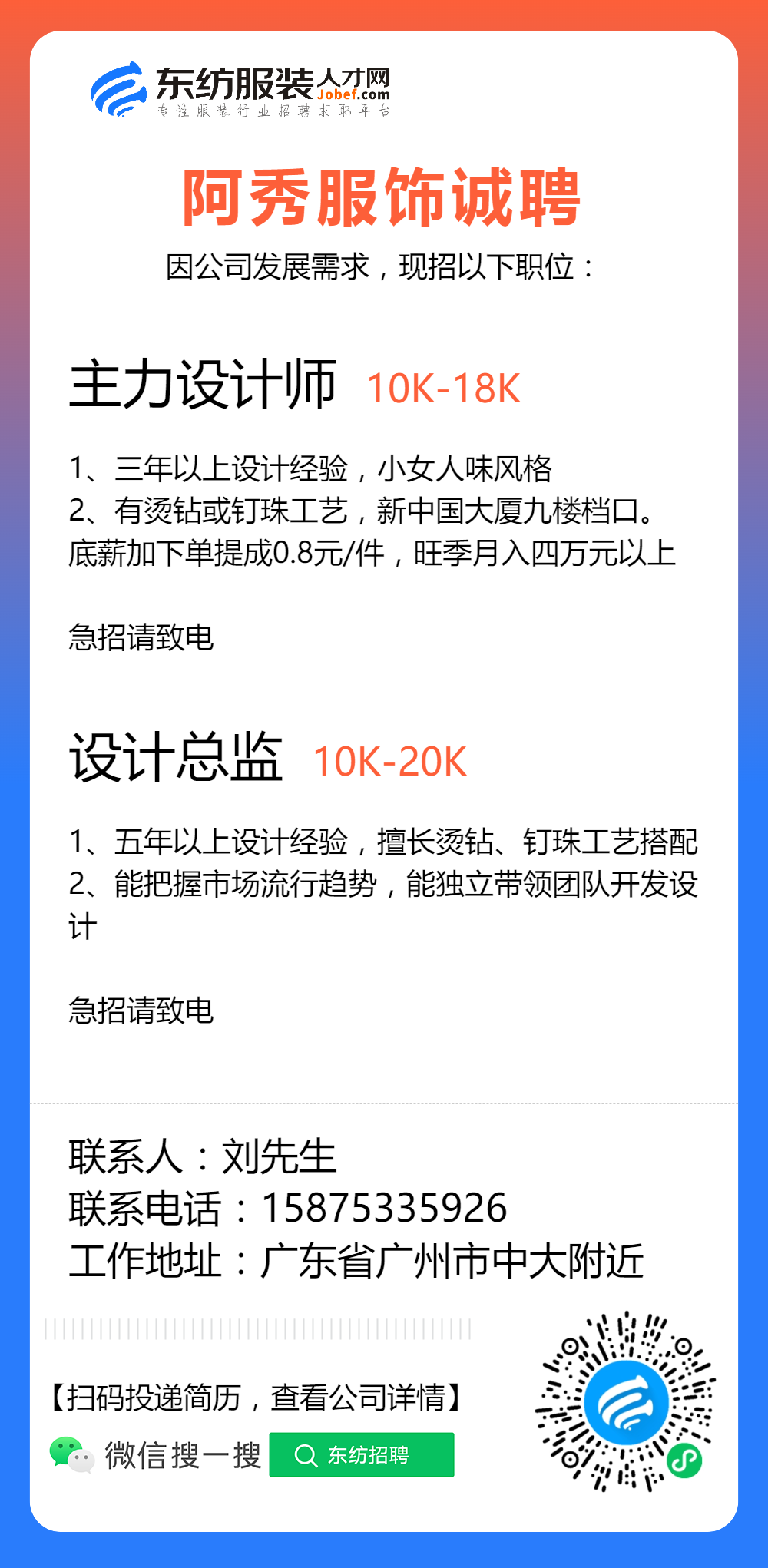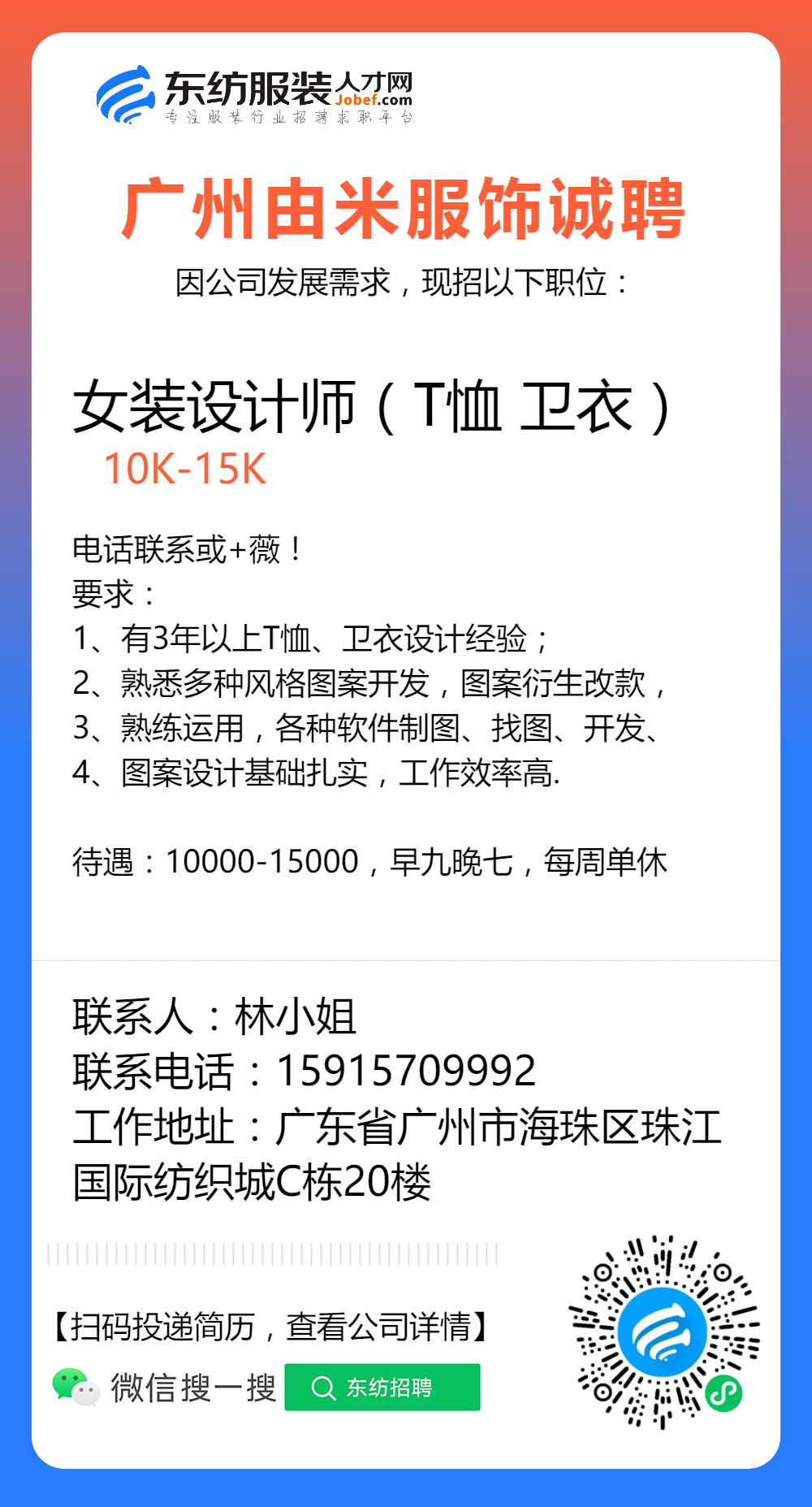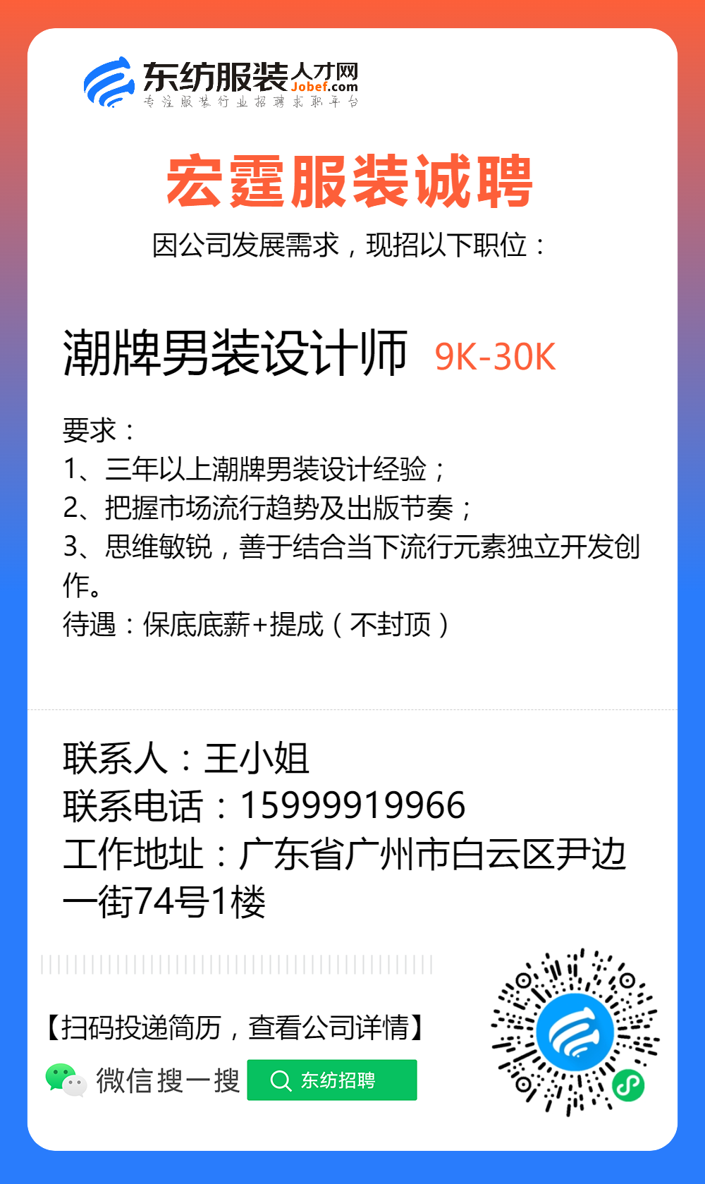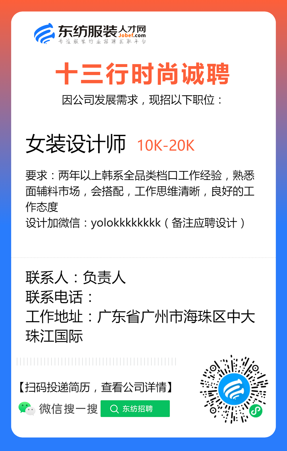 服装招聘·设计类丨2. 19号,女装设计师、男装设计师、童装设计师、设计助理.....